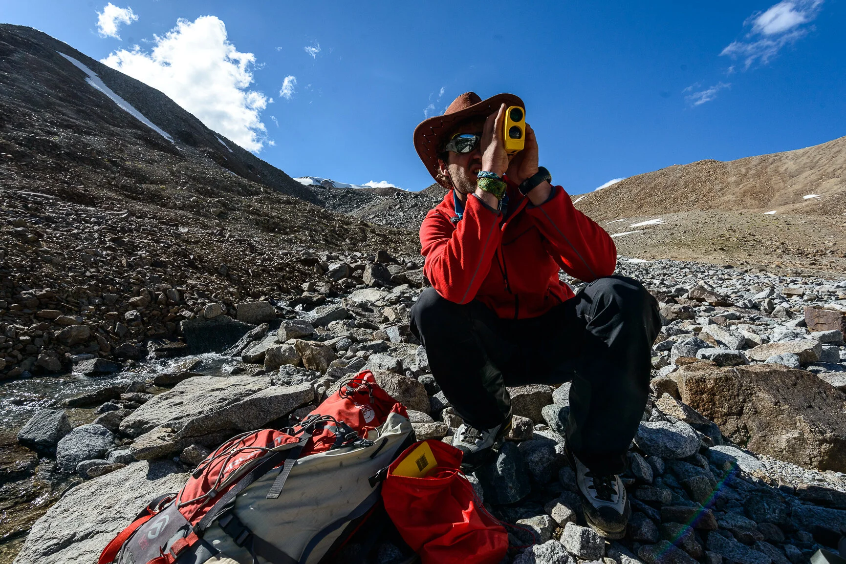 Figure 8. Sergiu Jiduc using a laser-range finder for geomorphic mapping - a key component of the research methodology. ©Christopher L. Rubey