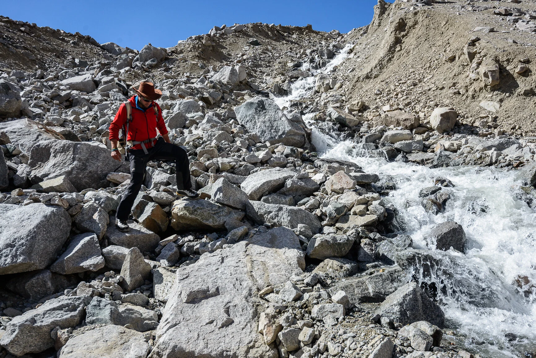 Figure 1. Sergiu exploring a debris flow in Phyang Valley. ©Christopher Rubey, 2013